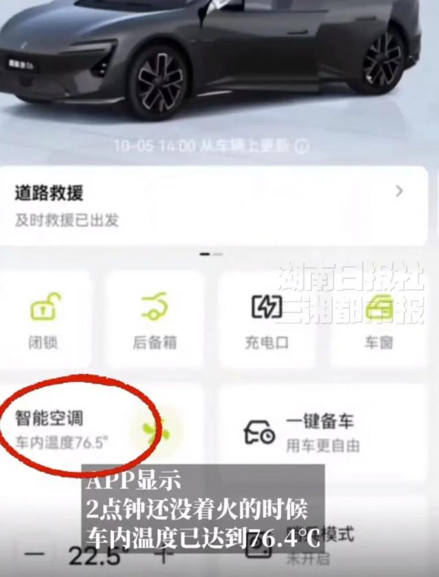 从视频上来看,阿维塔起火时最初是从副驾驶冒出烟,APP 显示,2 点钟还没着火的时候,车内温度已达到 76.4 ℃。