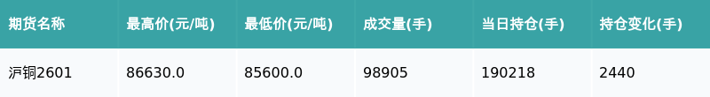 南财智讯11月21日电,南财金融终端盘后期货数据显示亿米网,上海期货交易所的沪铜主力合约收跌0.83%亿米网,收盘报85660.0元/吨亿米网,日内资金流入1.09亿元。其他相关指标见下表: