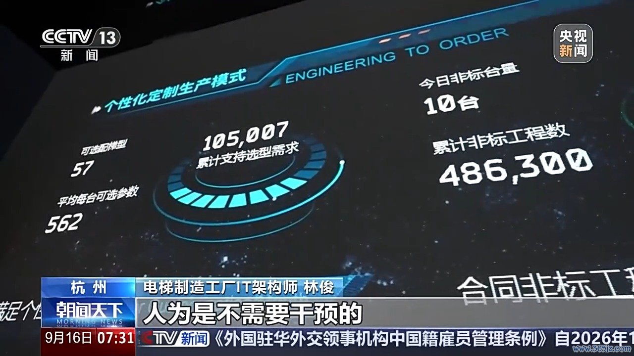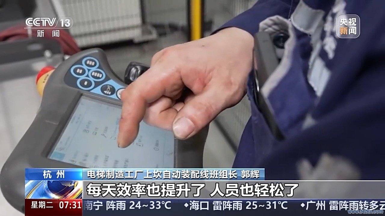 在杭州的这家电梯制造工厂,7万平方米的厂房内几乎看不到密集的工人。50多条大型柔性生产线自主运转,每2分钟就能下线一台电梯,生产效率远超传统模式。