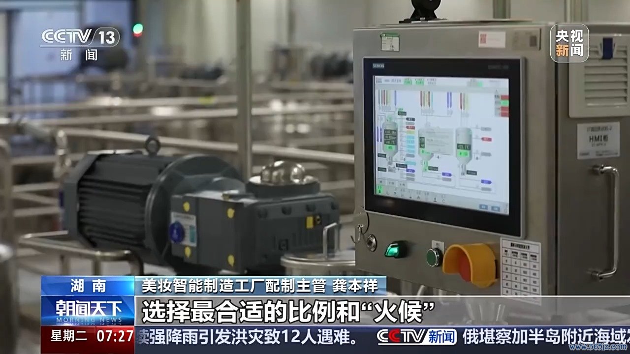 总台央视记者 张丛婧:这个大屏幕上的生产速度是实时跳动的,这其实是AI在调度产线,哪个产线该腾出来做面膜,哪个产线该多生产点乳霜,AI都给安排得明明白白的。随着AI大模型、数字孪生等技术的深度应用,这座美妆工厂的生产效率、柔性定制能力与绿色制造水平持续提升。