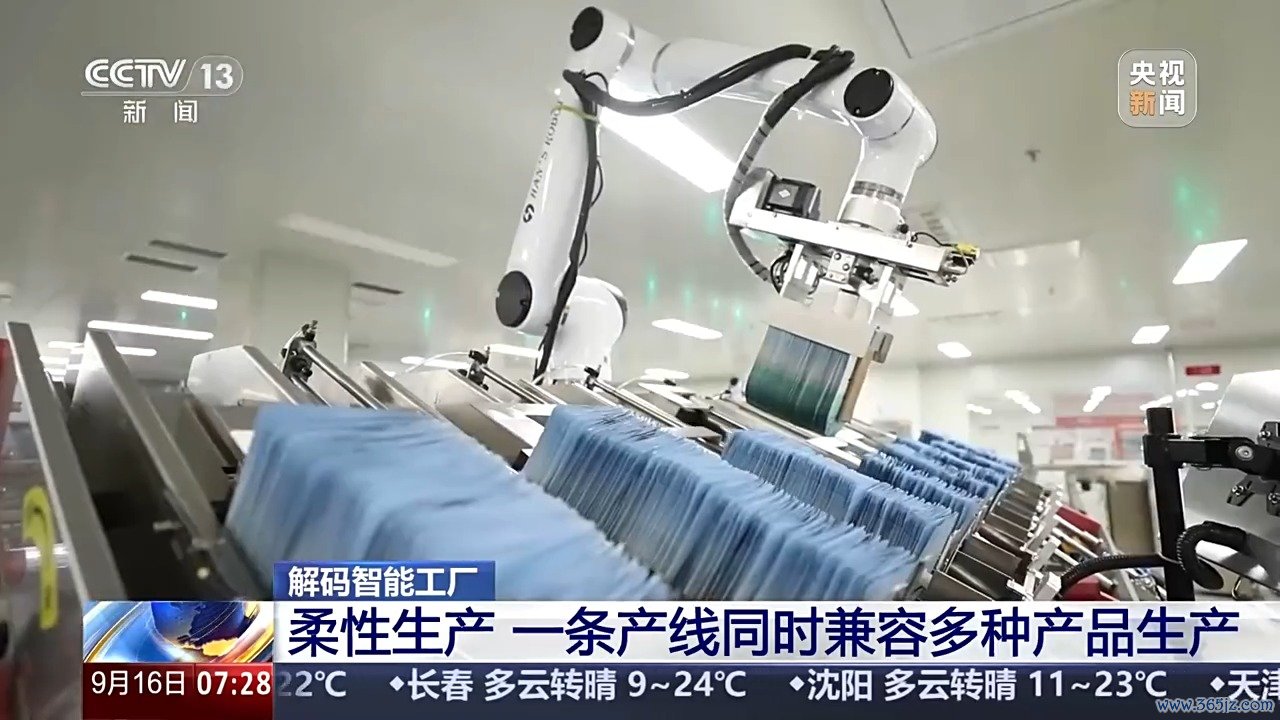 美妆智能制造工厂车间主管 杨静:可以设置成5片装、10片装,整合在一条产线上,变成不同的产品结构。