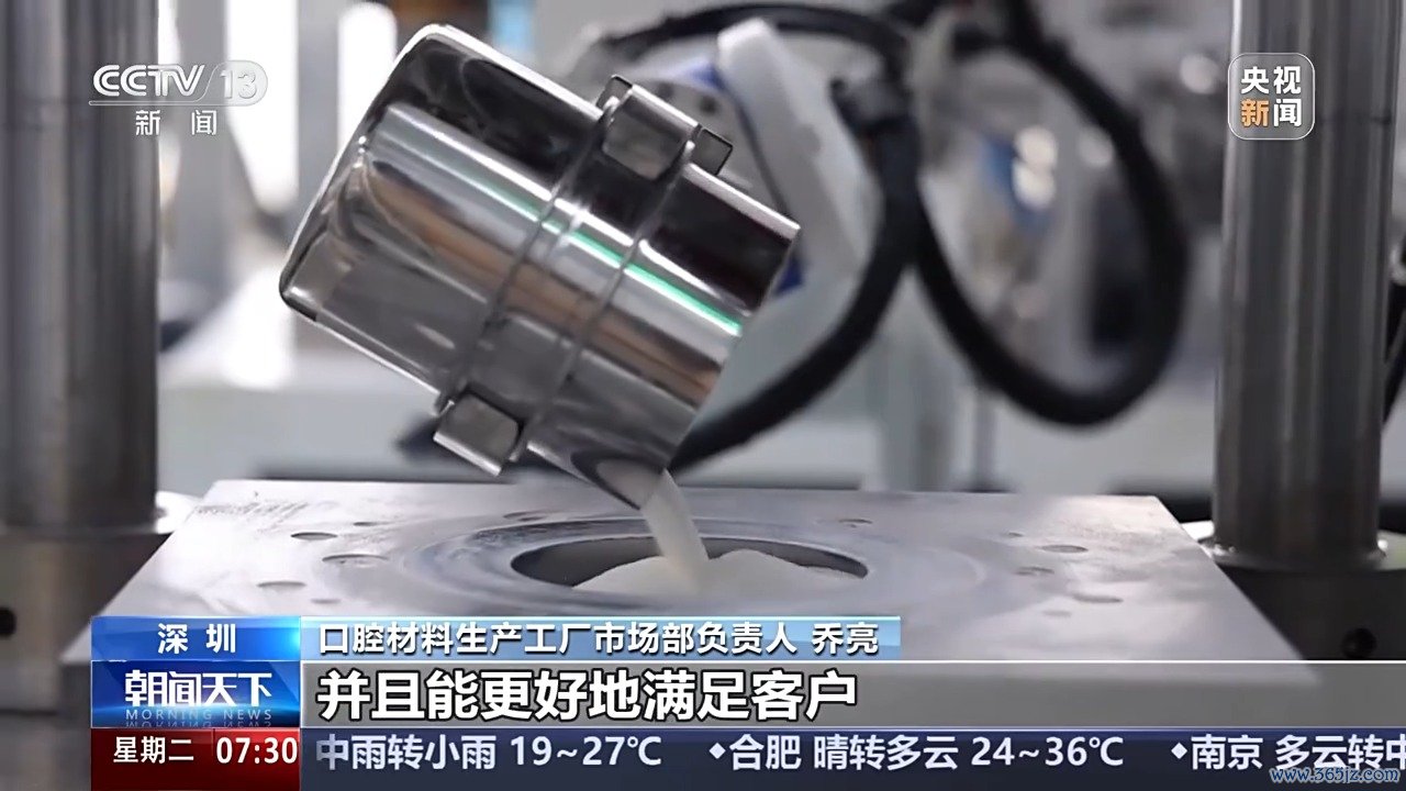 在深圳的这家口腔材料生产工厂里,基于AI的柔性生产线能自动将订单拆解为不同工序,同步实现多工位并行运作。在AI的统一调度下,单次生产作业仅需5秒即可完成,还能实现24小时不间断运行。